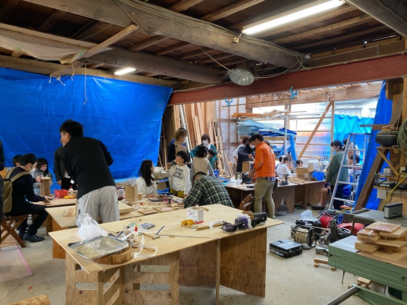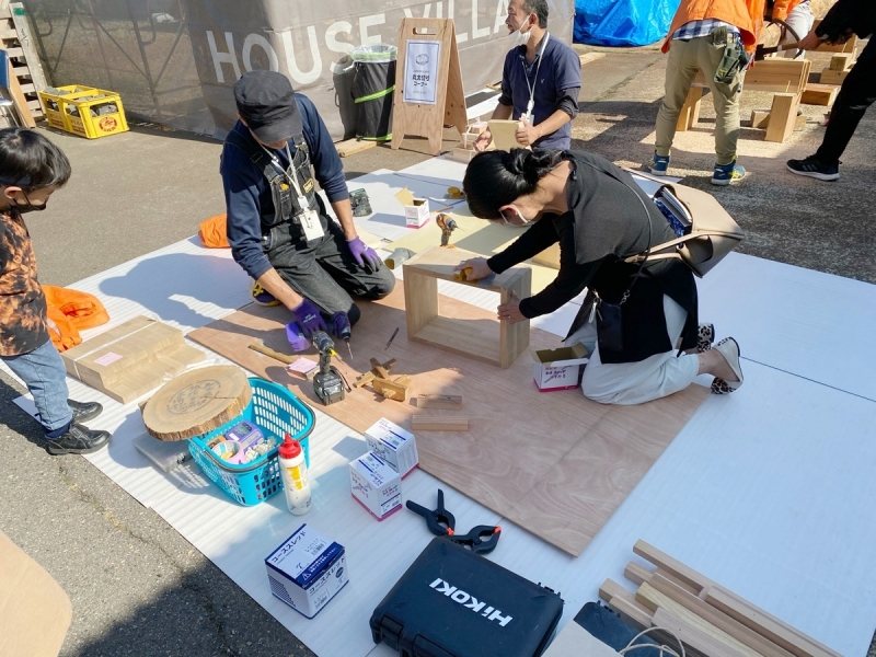 木工コーナーでは大工さんと一緒にミニ本棚やミニテーブルの組み立てを体験。