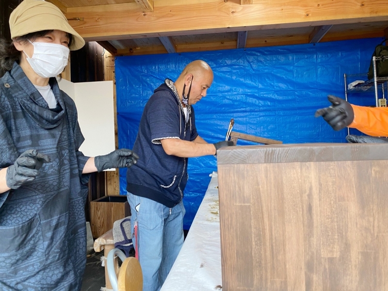 午後には雨が降り出す時間もありましたが、会場を作業場へ移動し、