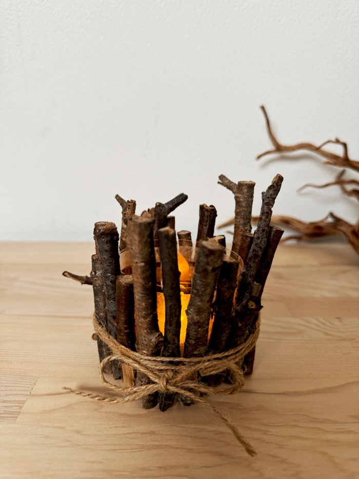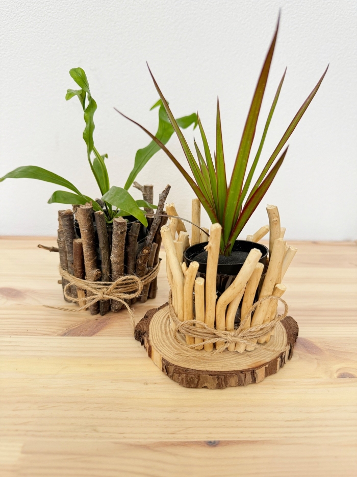 木の小枝を使ってミニサイズのプランター用ポットを作ります。