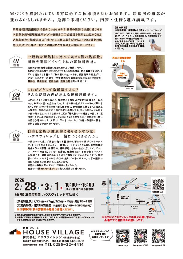 新潟県三条市月岡で“蓄熱する家”の完成見学会を開催いたします。