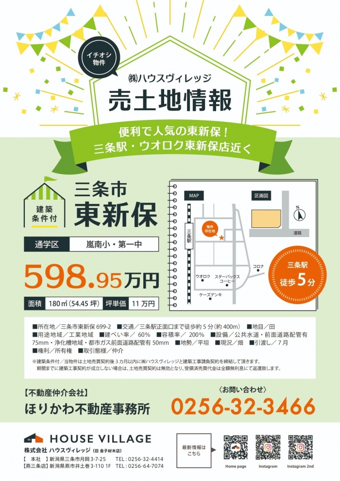 ※建築条件付/当物件は土地売買契約後3 カ月以内に㈱ハウスヴィレッジと建築工事請負契約を締結して頂きます。