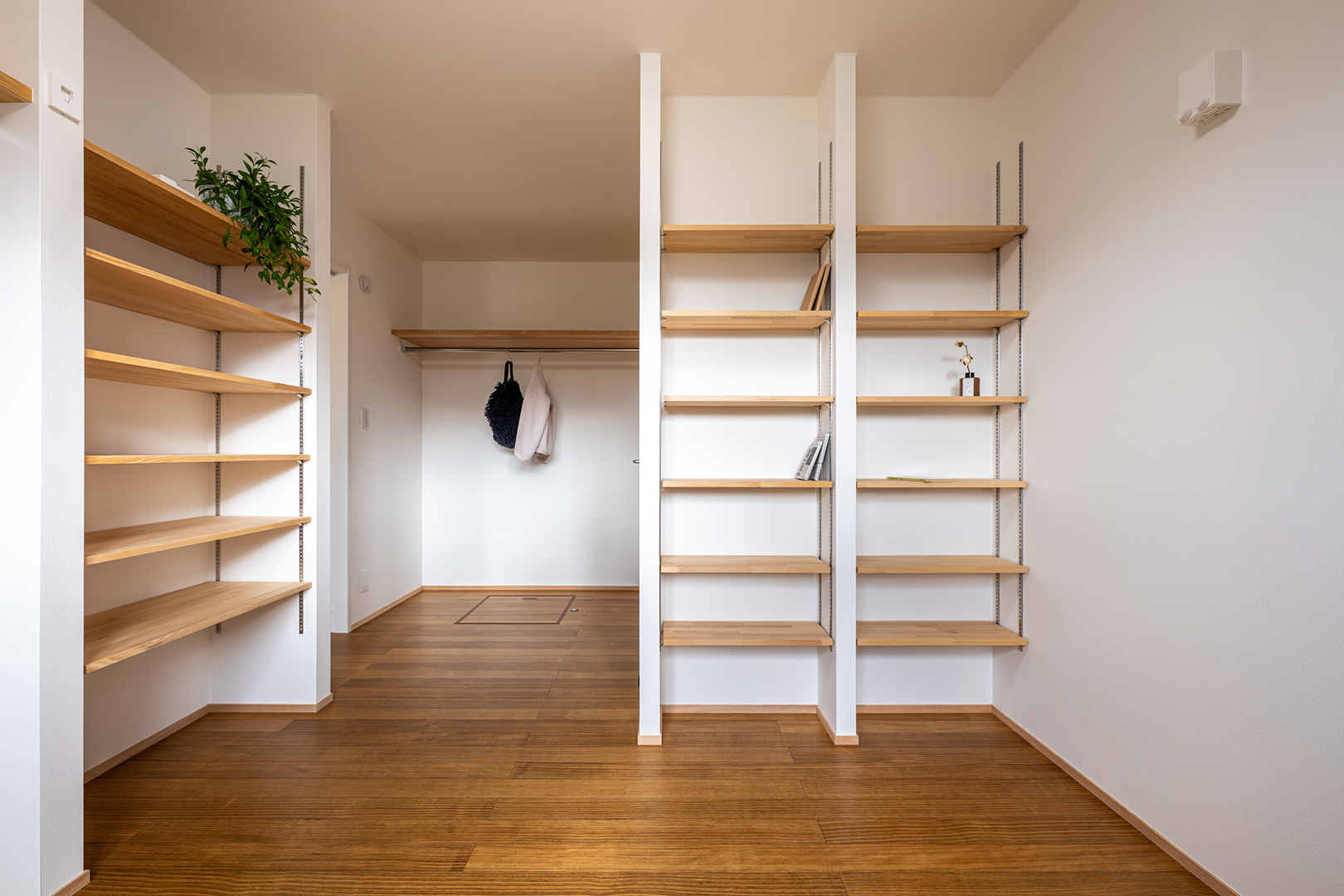 各所に収納スペースを取り付け、片付けやすいお住いに。