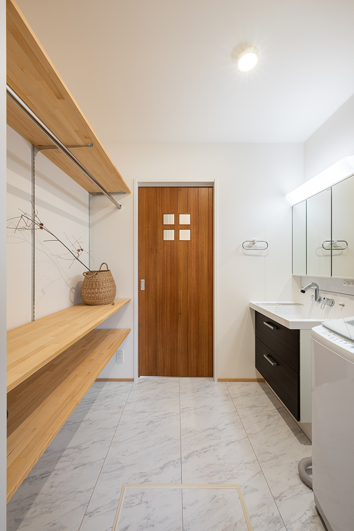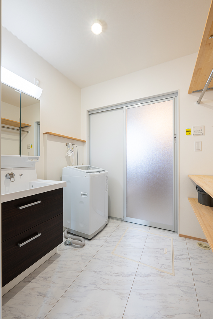 お洗濯と物干しができるよう、広めにスペースを確保。