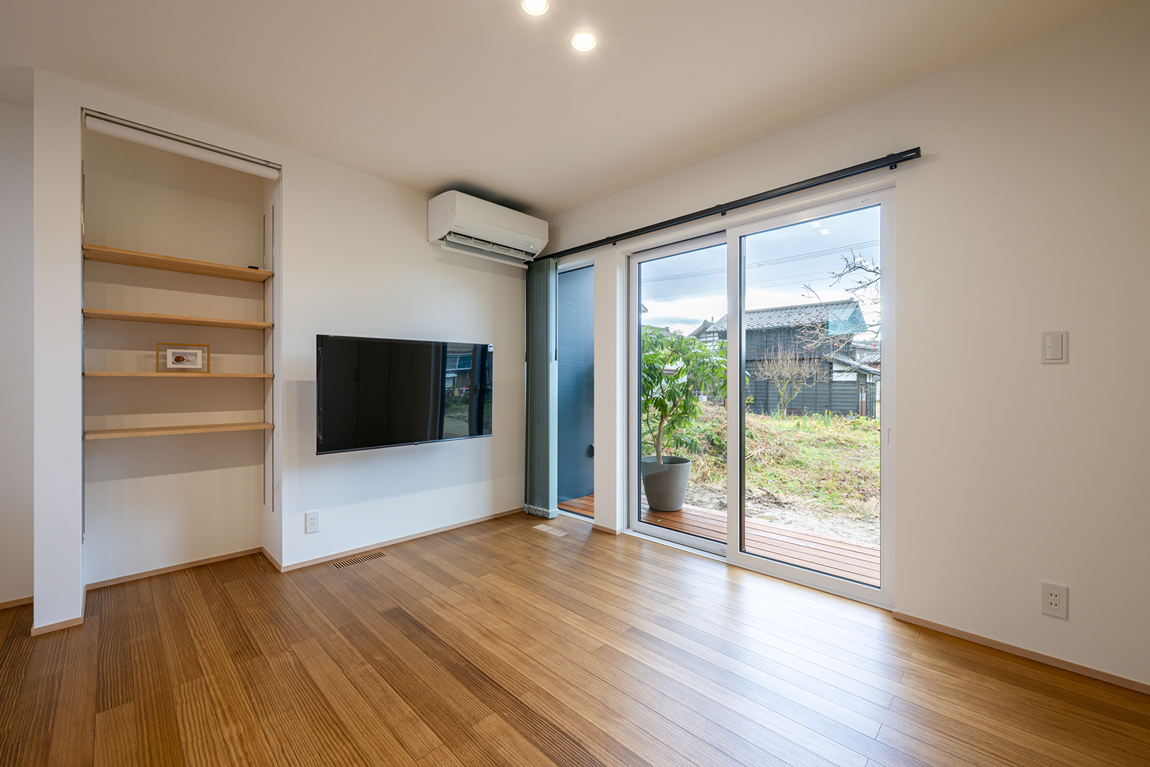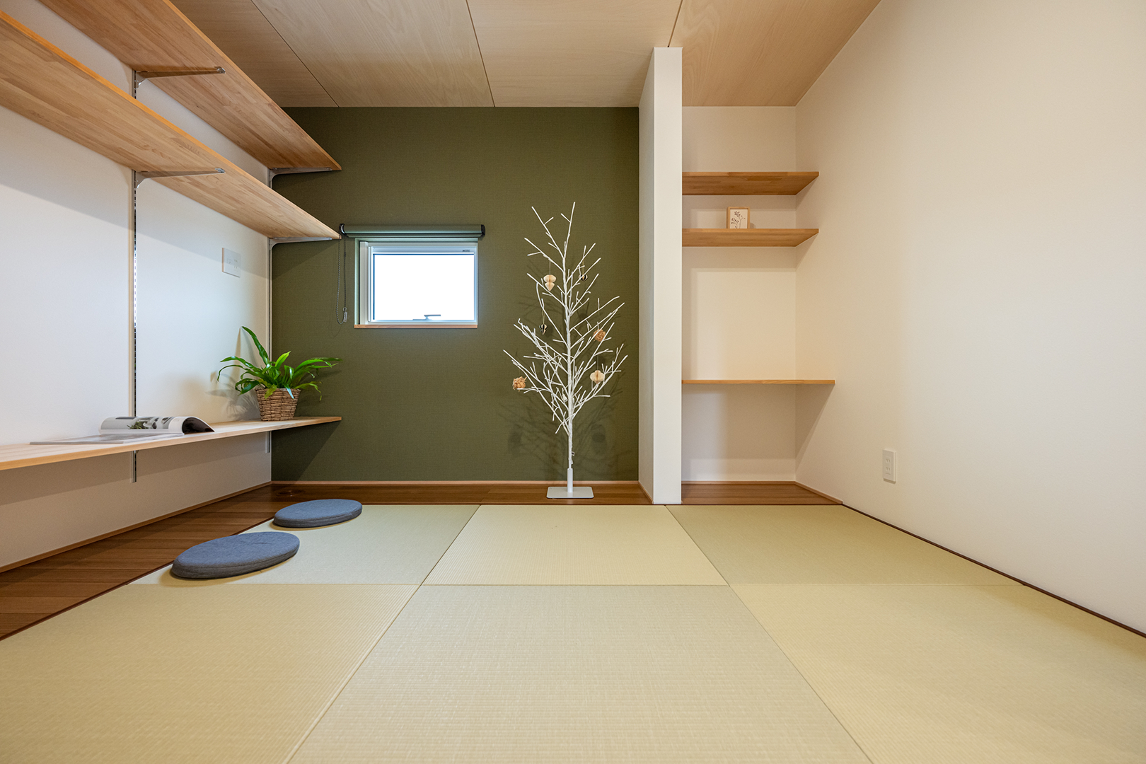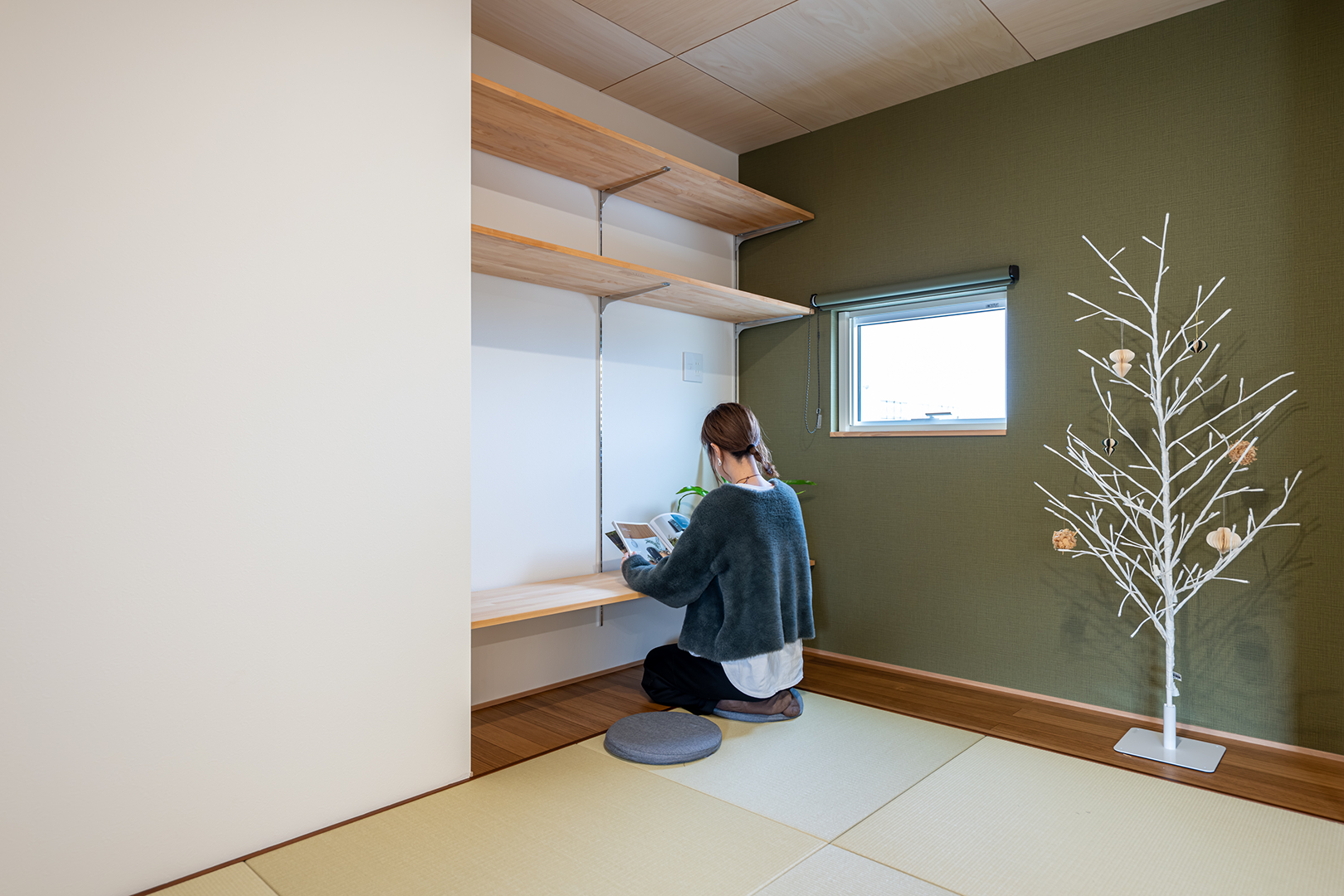 畳スペースにも収納棚を取り付け、お片付けや飾り付けを楽しめます。