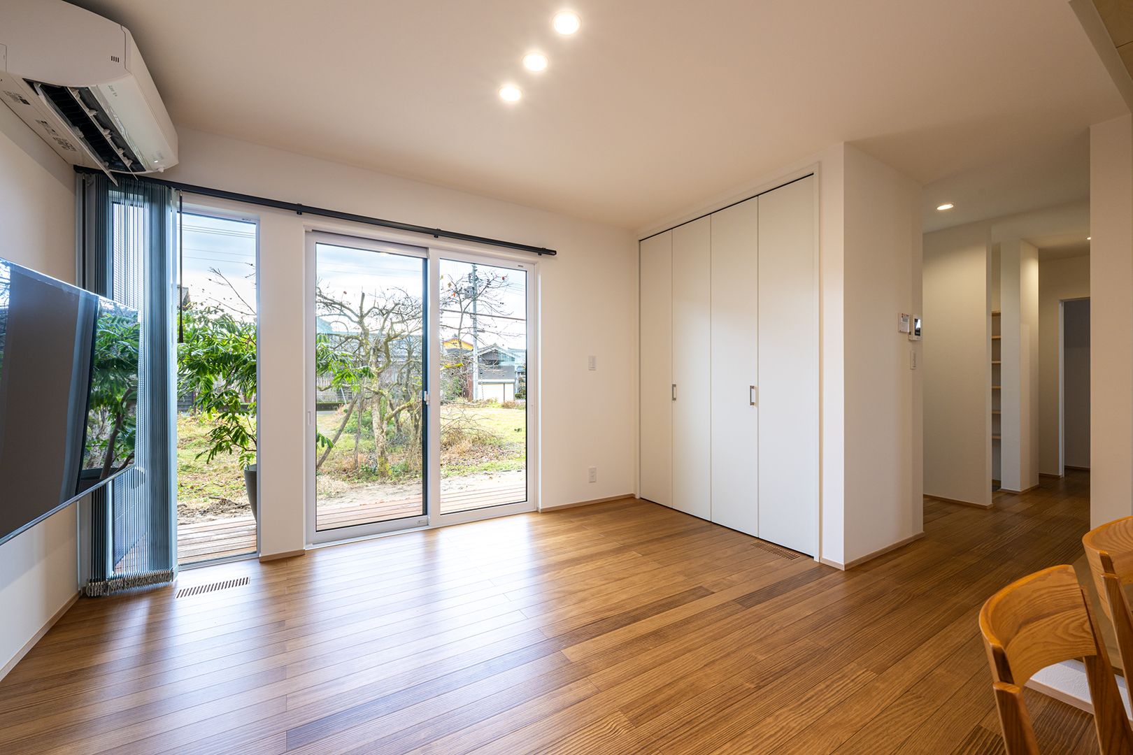 お部屋を仕切る扉を極力減らし、開放的な設計としました。