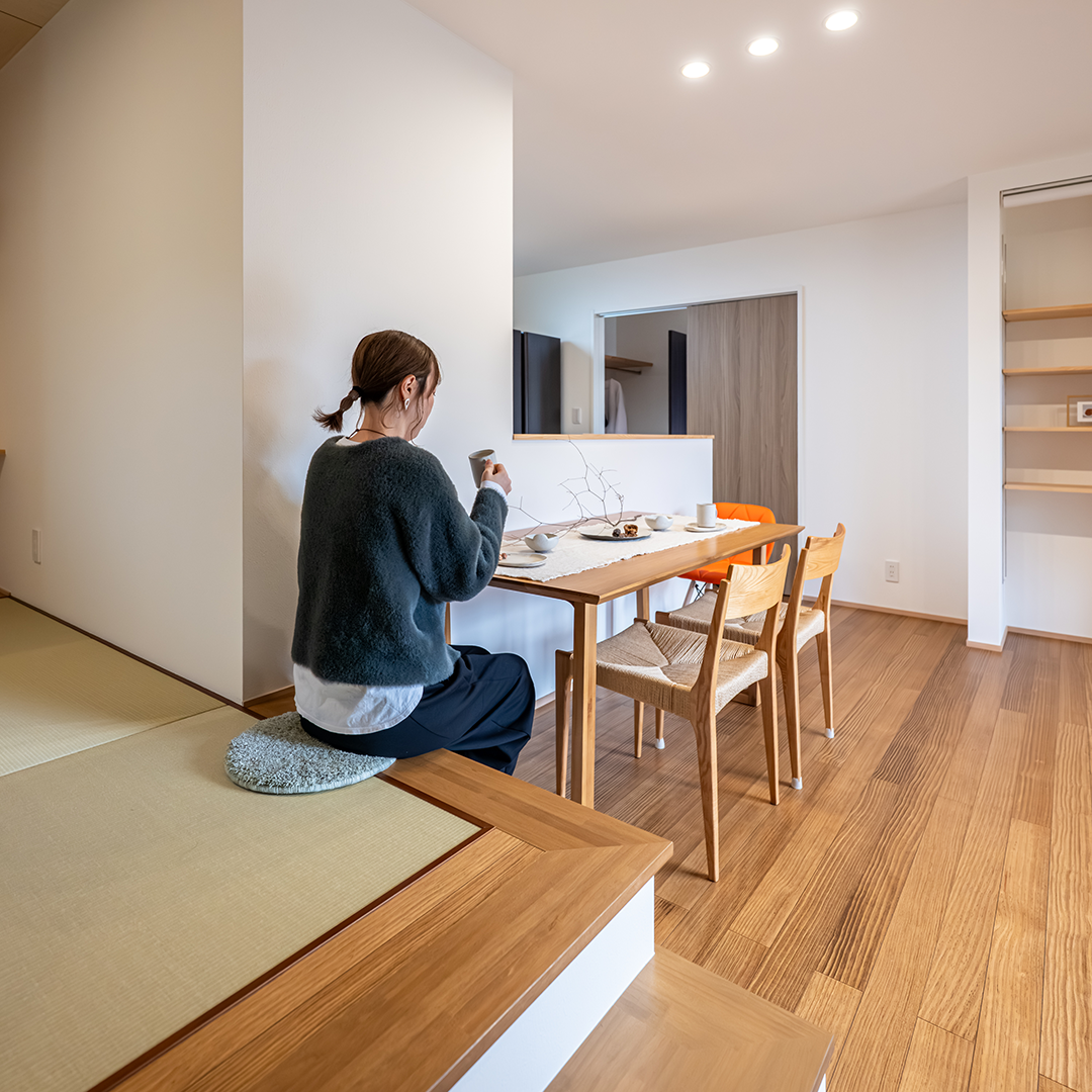 小上がりの段差はダイニングとして腰掛けることもできます。