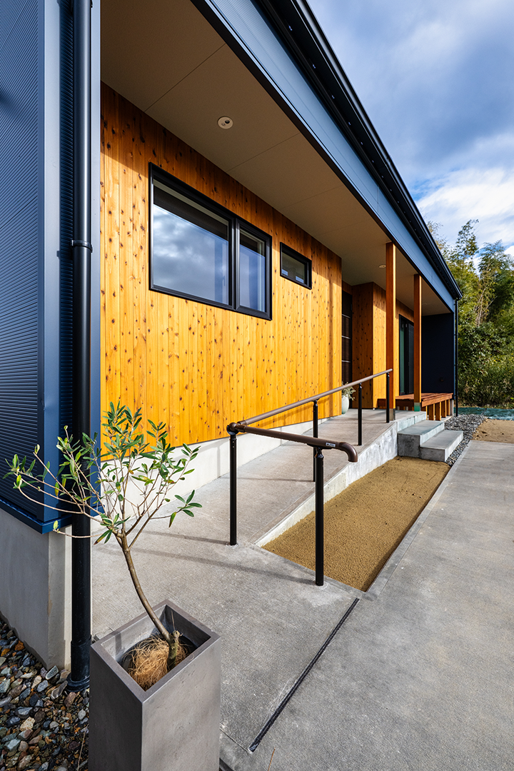 玄関にスロープを作ることで誰でも歩きやすいアプローチに。