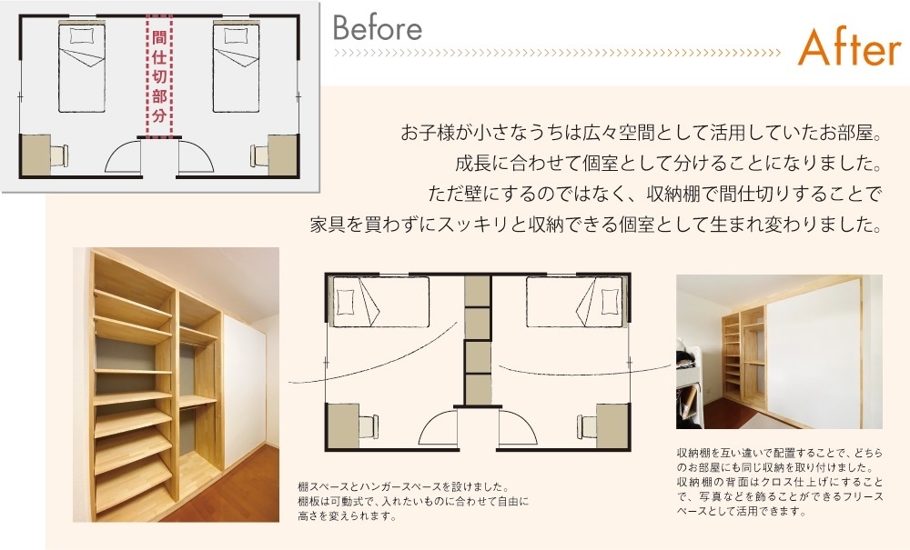 成長に合わせて個室として分けることになりました。