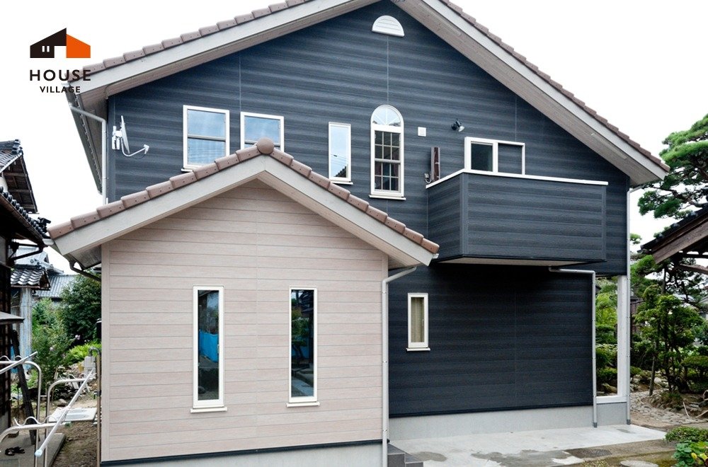 2つの切妻屋根が合わさった、美しいシルエットが特徴的なお住いです。 室内はシックモダンな雰囲気で、ところどころに和のポイントが入り、和洋がバランス良く融合しています。 帰ってきたら手を洗う!がこのお宅のルール。玄関に手洗い場を設置しました。 階段下の壁が目隠しになっているので来客からは見えません。 階段下にある手洗い。帰ってきたらすぐに手洗いができるように配置しました。 大きな窓を取り付けた、カウンター式の明るいダイニングテーブル。 くつろぎの畳コーナー。 小上がりになっていて、空間にメリハリを付けました。 和と洋が調和したリビング空間。 重厚感を演出した個性的なプライベートルーム。 ロフト空間を畳コーターにしました。丸窓を眺めながらごろりと横になるのが気持ちいいです。 階段ホールを有効活用して子ども用デスクを造作しました。 子供部屋にはロフトをつけました。 隠れ家のように使えるワクワクスペースです。