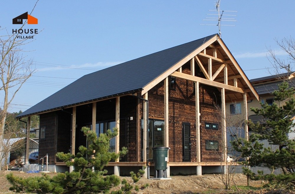 外壁の焼き杉が大迫力の住宅です。 お施主様自らバーナーで外壁の杉材を焼きました。 室内にも杉材をふんだんに使い、天然木の香りに囲まれた素敵な住まいとなりました。 木材をふんだんに利用したオリジナルのキッチンスペース。 食器棚やダイニングテーブルなど全て造作しました。 表しの梁が目を引く和室は収納スペースを設けるなど、使い勝手のいいお部屋にしました。和モダンな雰囲気も素敵です。 浴室と一体化した脱衣室は全面杉材に囲まれたリラックススペースとなりました。 吹き抜けの天井から眺める室内の景色がとても美しいです。 天井の形状が特徴的な二階の個室。可動棚を造作しました。 屋根裏部屋は隠れ家的なワクワク空間になりました。 階段ホールにはベンチを作り付け、ちょっとしたリラックススペースを作りました。 階段はお部屋の圧迫感をなくすスリット階段を造作しました。