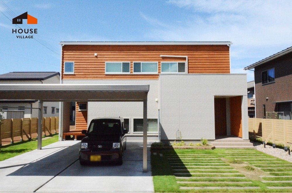 上部半分にウエスタンレッドシダーをよろい張りした、個性的でおしゃれな外観と大きなフェンスがかっこいいです。 玄関ホールには間接照明が優しい空間を演出し来訪者をお出迎えします。 木のぬくもりに包まれるダイニング空間。お庭を眺めながら食事を楽しめます。壁付けの大きな棚は造作しました。 階段下には両面から収納が可能な棚を造作しました。キッチン側は食器を収納し、リビング側はお子様の玩具などを収納できます 作り付けのデスクでお子様がお勉強します。 広く取られたフリースペースはいずれお子様の成長に合わせて仕切りを入れ、個室になる予定です。 光量を調整できるダウンライトで上質なリラックス空間を演出。 廊下を利用した広々ウォークインクロゼット。お部屋側からと廊下側から両方から入れて便利です。