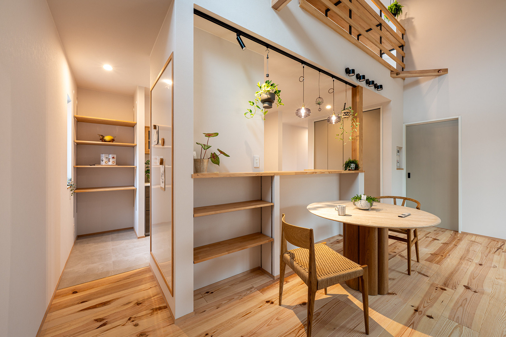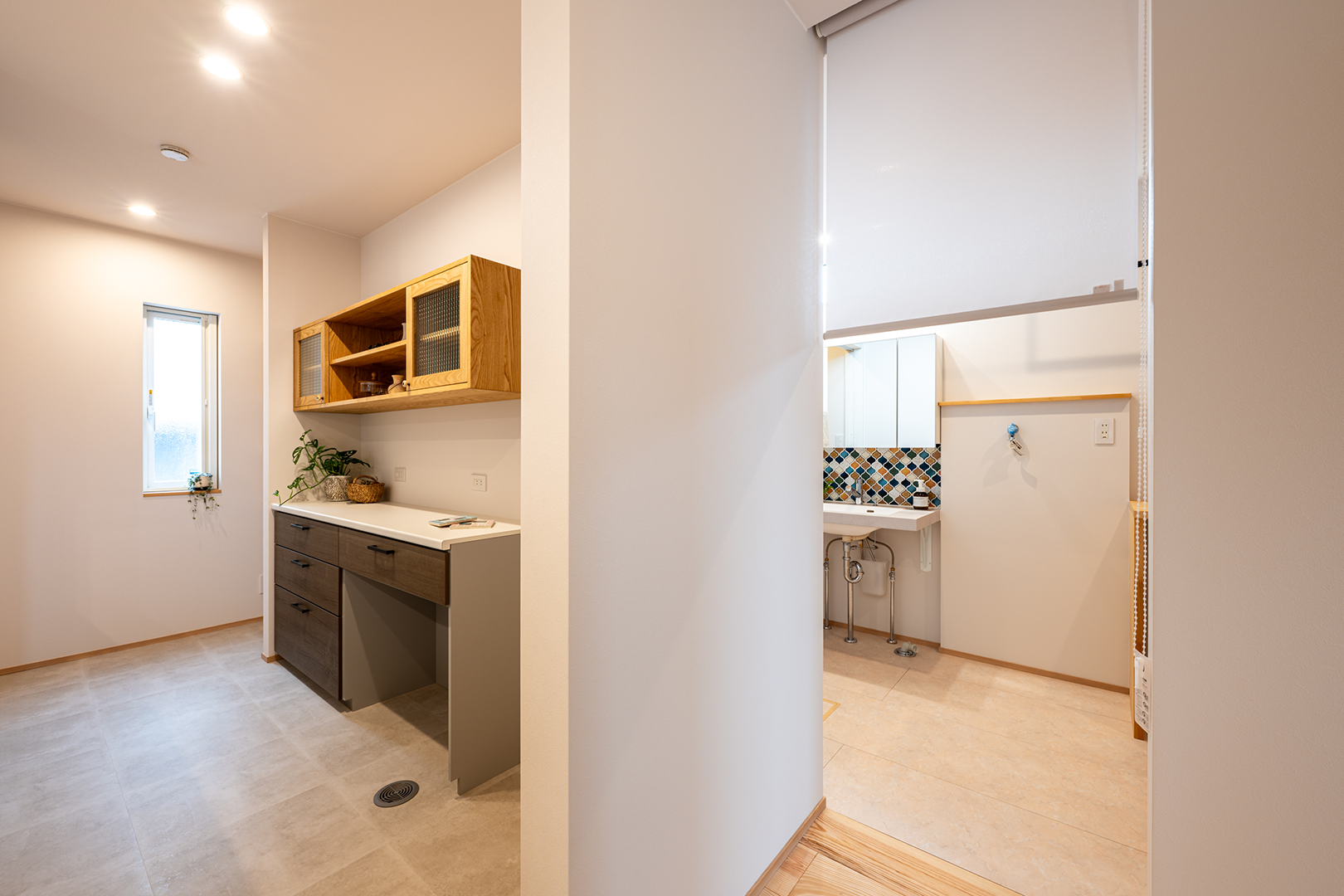 キッチンからランドリールームへの導線をつなぎ、家事を楽にできるようにしました。