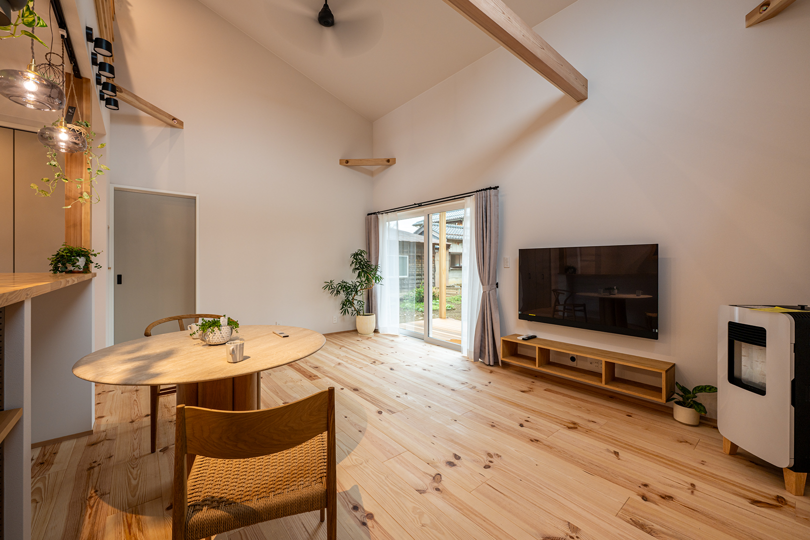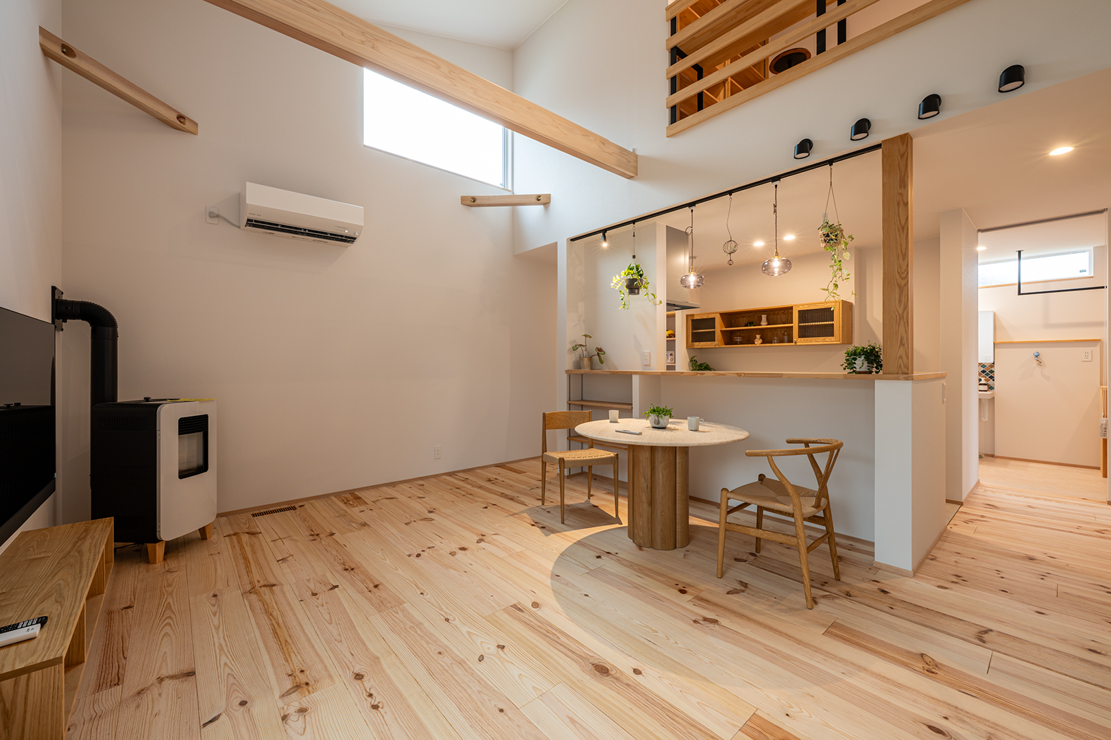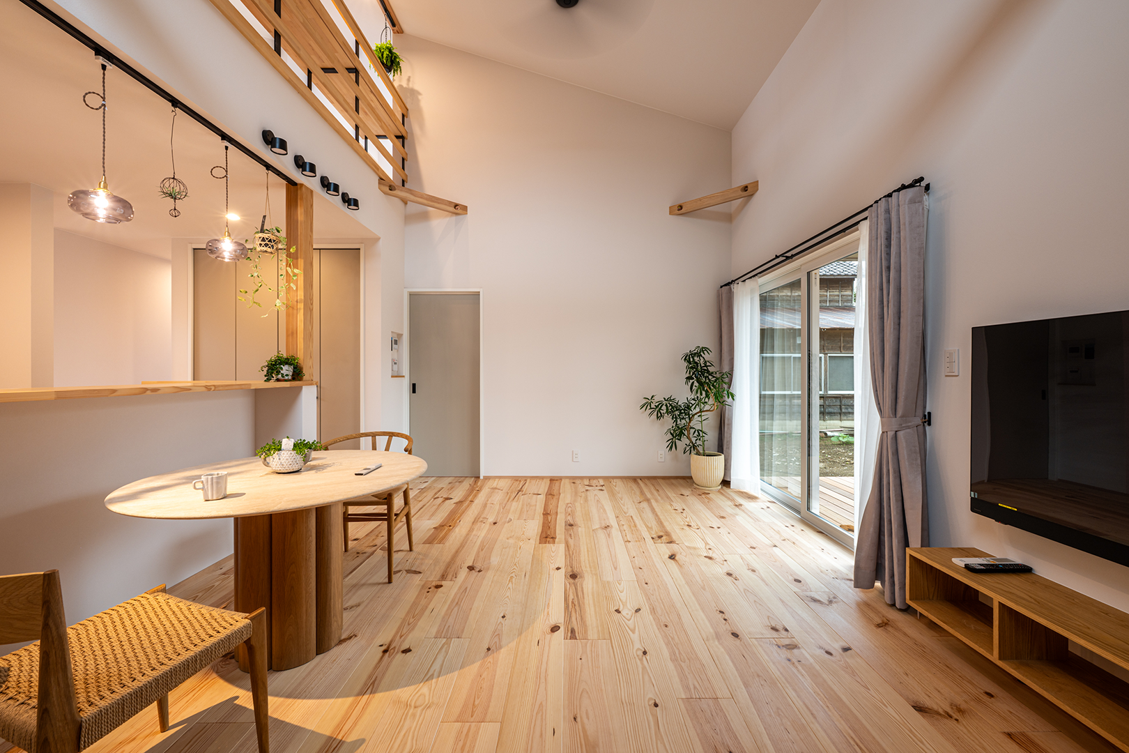 グリーンを飾ったりハンモックを吊るしたりと楽しみが広がる梁を表しにしました。