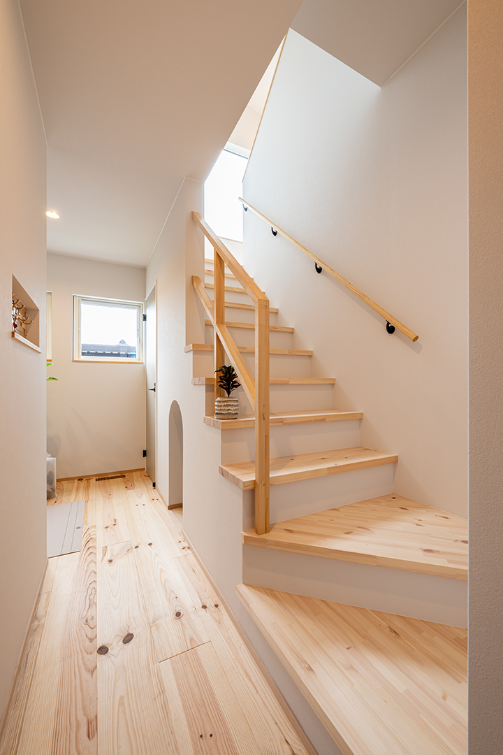 暗くなりがちな階段スペースも、窓位置を考え太陽光が差し込む設計としました。