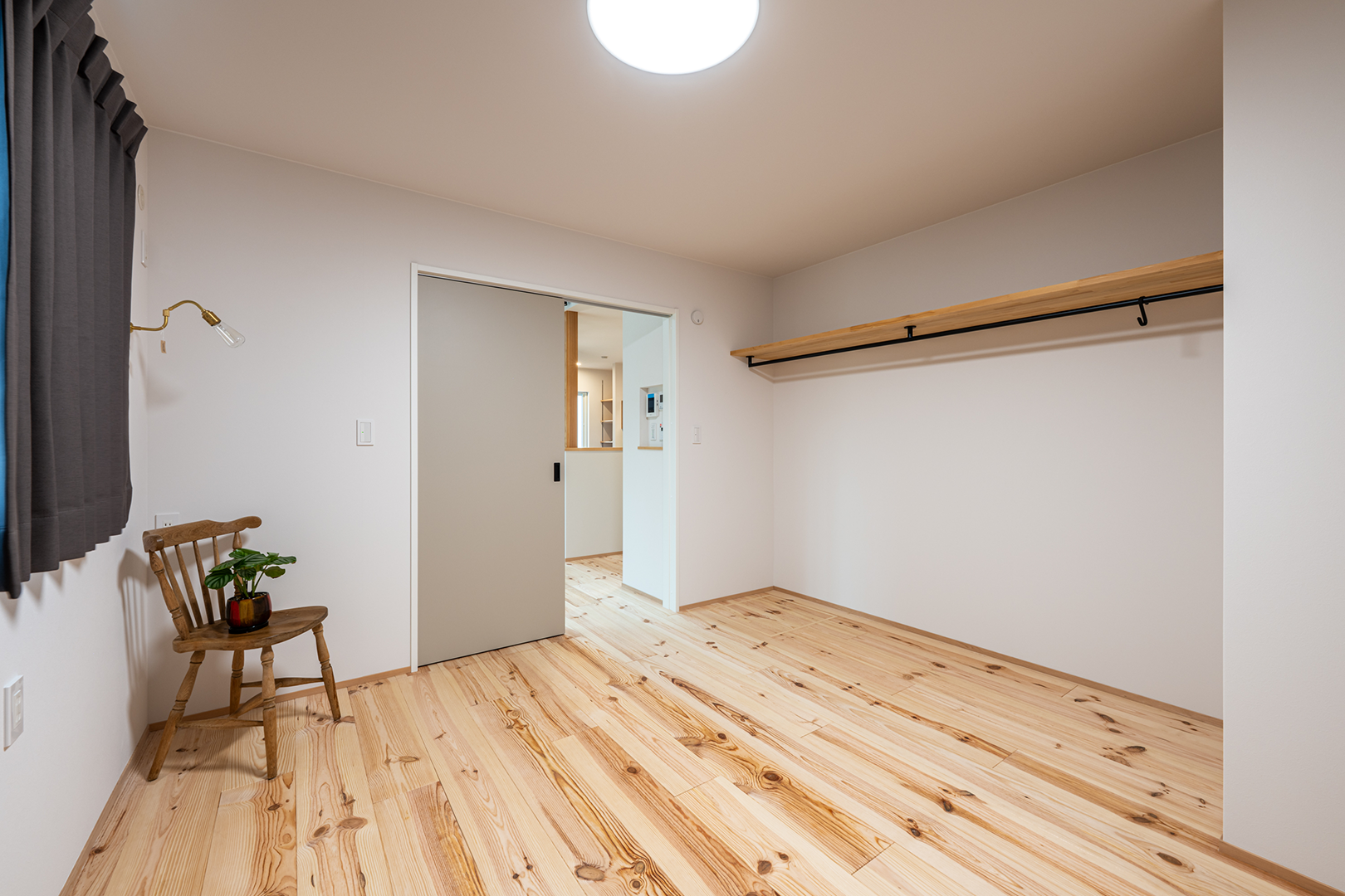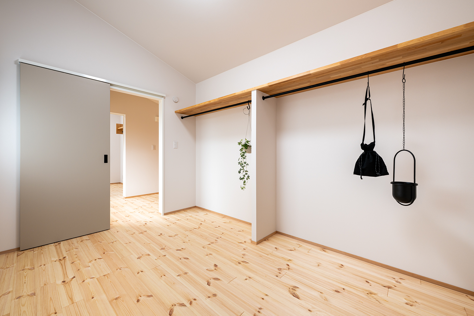 クローゼットの扉を無くし、室内スペースを広く取りました。