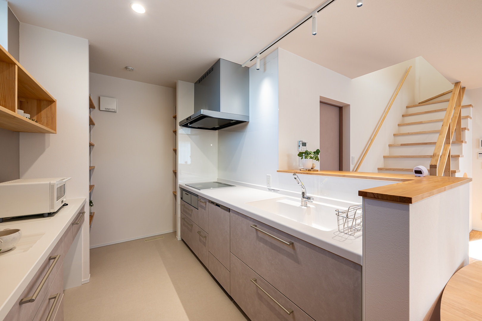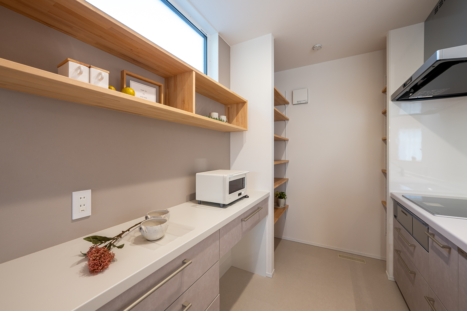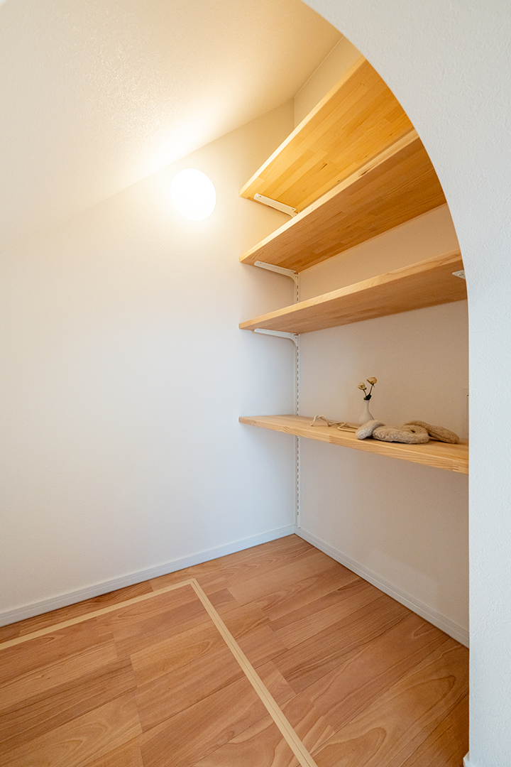 キッチンの奥にはパントリースペースを設け、いろいろなストック品を収納できます。