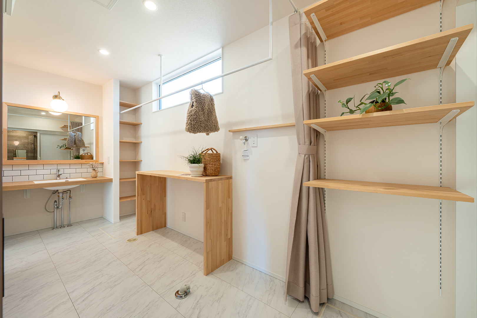 カウンターを取り付け、アイロンがけや洗濯物を畳む作業台としても使えます。