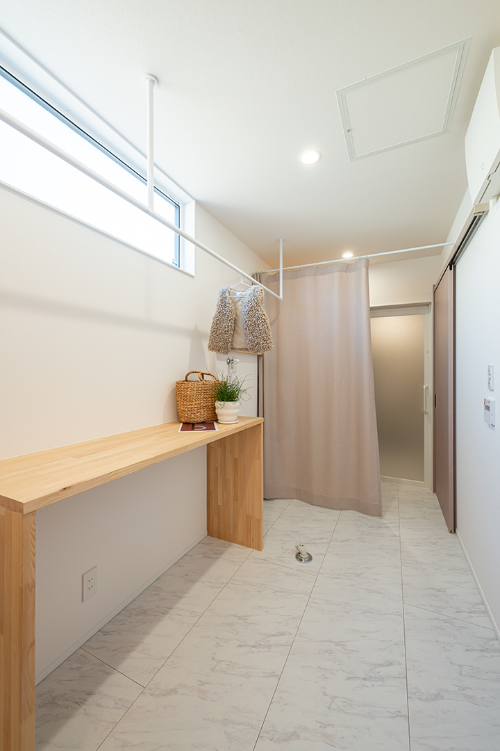 お洗濯と物干しスペースを1箇所にまとめ、家事を楽にする間取りです。