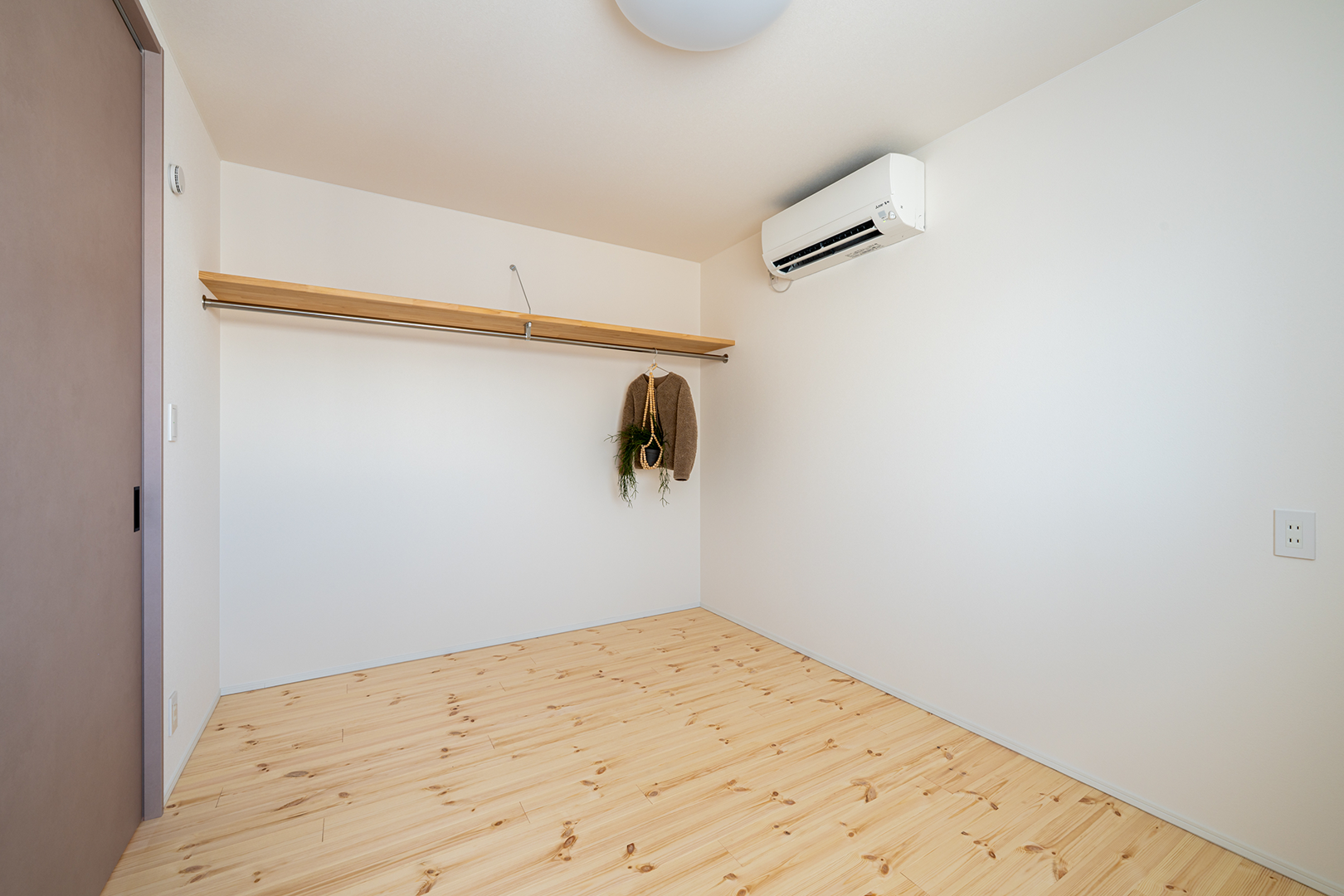 物干しスペースとして、ポールを取り付けました。ご家族が増えたときには個室としても使えます。