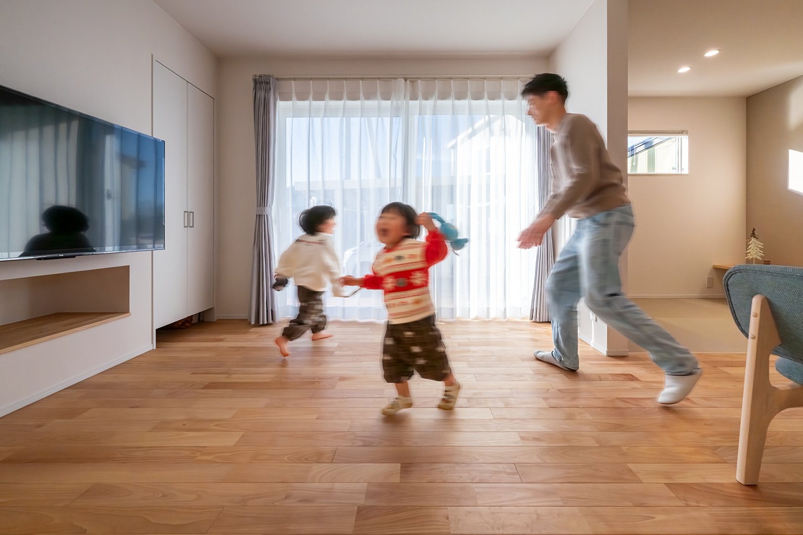 お子様が小さいうちは広々フリースペースとして、お子様の成長に合わせて仕切って個室として使います。